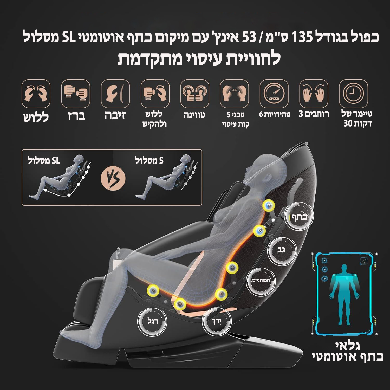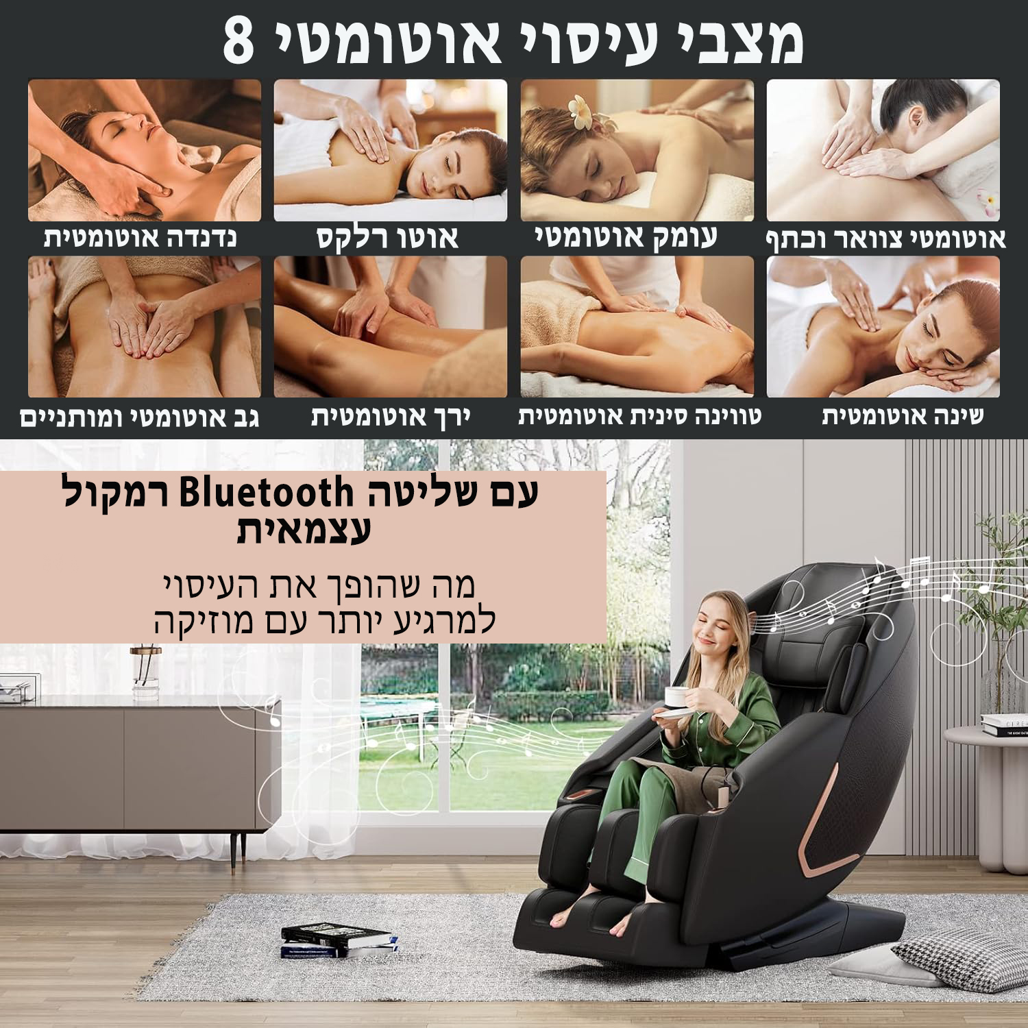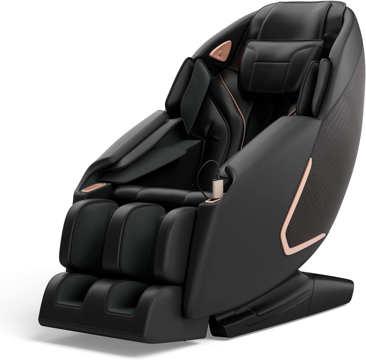 Experience ultimate relaxation with this advanced massage chair, featuring 3 zero-gravity modes to reduce heart pressure and a footrest with independent tilt and 5-inch extension. Enjoy a full-body compression massage with adjustable intensities, 3-speed foot rollers and waist heating. Choose from 8 automatic modes or customize your massage with manual settings, including 5 techniques, 7 zones and 3 widths. Dual SL straps ensure a personalized fit, while the smart shoulder position adjusts to your body. Includes remote control, built-in speakers, USB charging and phone slots for convenience.
